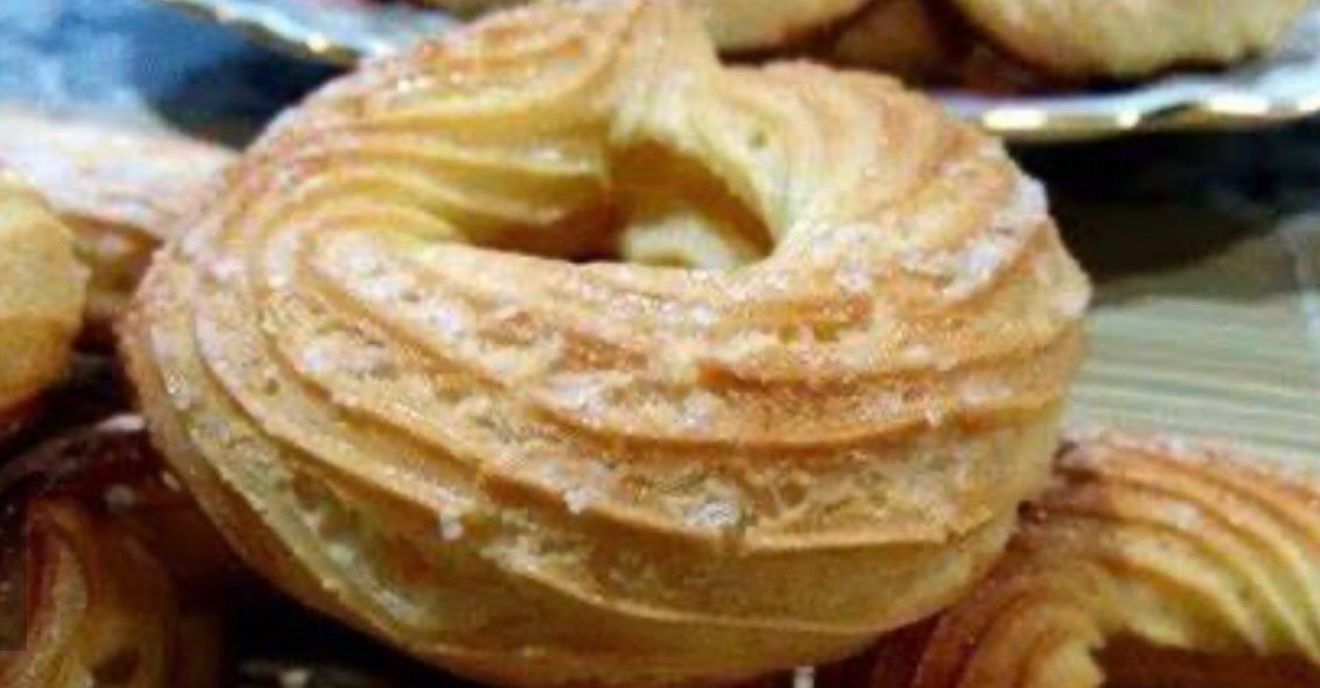 Um biscoitinho caseiro feito com apenas cinco ingredientes. Pronto em menos de 1 hora, essa massa rende 30 unidades.O biscoito é feito com os mesmos ingredientes da massa choux (as carolinas) Então, não é usado fermento pra fazer a massa crescer: é o vapor criado durante o tempo de forno que faz a massa ficar mais altinha e oca por dentro.Confira como fazer!Ingredientes:250 mililitros de água150 gramas de farinha de trigo125 gramas de manteiga4 ovos açúcar cristal para polvilharPreparo:Ferva a água com a manteigaAcrescentar, aos poucos, a farinha e mexa até cozinhar.Leve o conteúdo à batedeira e acrescentar os ovos, até a massa ficar homogênea.Coloque num saco de confeitar, com um bico frisado, e fazer os biscoitos em forma de rosquinha, numa assadeira.Antes de levá-los ao forno, salpique açúcar cristal.Leve ao forno preaquecido a 200 graus e asse por 25 min.