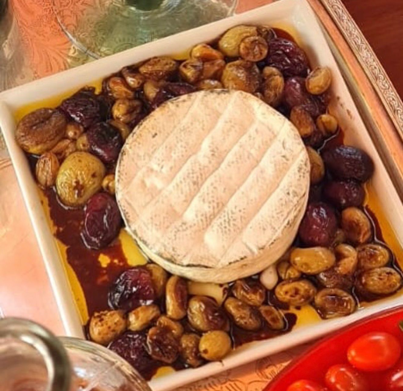 Entrada deliciosa, usei o queijo “Lua Cheia” da Serra das Antas Ingredientes:2 xícaras de uvas (sem sementes)2 colheres (sopa) de azeite de oliva extra virgem1 colher (sopa) de balsâmicoPitada de sal e pimenta-do-reino a gostoRamos de tomilho fresco (opcional)Pão italiano ou torradas para acompanharPreparo:Pré-aqueça o forno a 200°C.Em uma assadeira, disponha as uvas, regue com azeite, balsâmico e tempere com sal, pimenta e tomilho.Leve ao forno por cerca de 15 minutos, até que as uvas estejam macias.Coloque o queijo (de preferência cremoso) no centro de um prato ou tábua e distribua as uvas assadas ao redor.Regue tudo com o líquido que sobrar da assadeira.Sirva imediatamente com pão italiano ou torradas.Ficas:- Prove com uma burrata- Coloque mel no lugar do balsâmico- polvilhe pistache ou nozes picadas