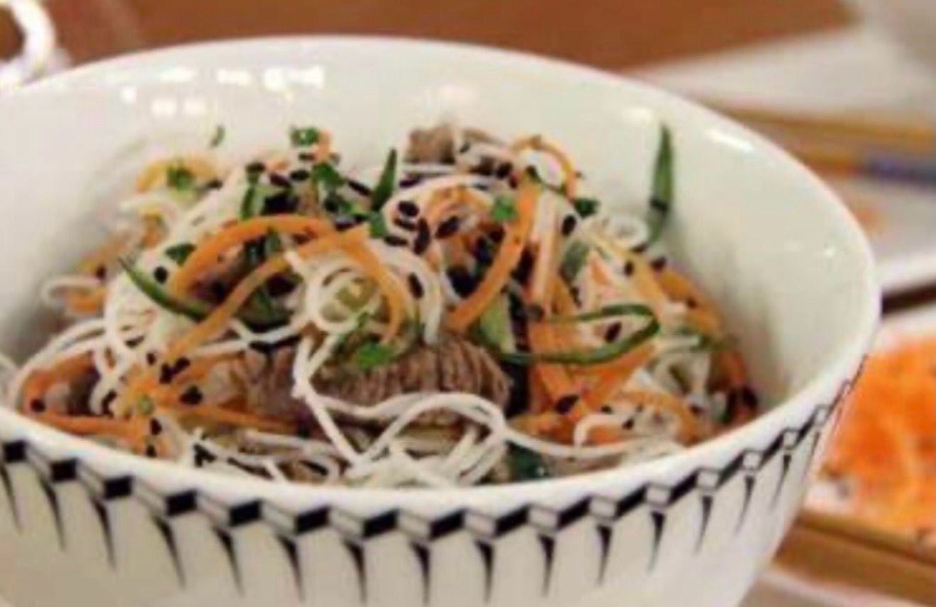 Vamos começar por:BIFUM é um tipo de massa oriental que surgiu na China e tem como principal característica o fato de não possuir farinha de trigo em sua composição. Seu significado na língua chinesa é basicamente “massa seca de arroz”, isso porque sua receita leva a farinha extraída desse alimento.Ele é muito utilizado como alternativa para pessoas que precisam seguir uma dieta sem glúten. Além disso, ele ajuda a controlar o colesterol e pode ser preparado em poucos minutos.Por ele ser feito basicamente de arroz e água ele também se torna uma ótima opção para os adeptos da alimentação vegana, já que ele não possui nenhum ingrediente de origem animal.Como preparar macarrão bifum?Esse é um alimento que possui um preparo muito rápido e essa é uma das suas vantagens.Para cozinhar o macarrão bifum é bem simples, basta adicionar água em uma panela e esperar ferver. Quando isso acontecer mergulhe o bifum por 2 minutos e escorra. Em seguida mergulhe o macarrão em um recipiente com água gelada. Isso vai fazer com que o cozimento se interrompa e o alimento se mantenha o ponto ideal.Salada de Bifum com tiras de FiléIngredientes:Sal e óleo de gergelim a gosto200 grama(s) de macarrão bifum1 pepino japonês pequeno fatiado em tiras200 grama(s) de filé mignon cortado em tiras1 cenoura pequena fatiada em tiras2 colher (es) de sopa de cheiro-verde1 colher (es) de sopa de gergelim preto1 dente(s) de alho amassadoPreparo:Coloque o bifum em um recipiente grande e cubra com água fervente, deixe descansando de 2 a 4 minutos. Escorra, passe por água gelada, escorra novamente; coloque um pouco de azeite e reserve. Misture o pepino japonês e a cenoura, e coloque sobre uma peneira, polvilhe sal e deixe descansando por meia hora para soltar os líquidos. Depois disto, misture a cenoura e o pepino com o bifum, acrescente cheiro verde e gergelim preto. Refogue o filé cortado em tiras e tempere com o alho em fogo bem alto, acerte o sal e pimenta-do-reino, coloque no bifum, misture bem e sirva a seguir.